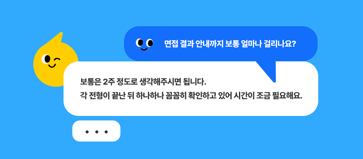 보통 면접 결과는 2주 내외로 안내해 드리고 있지만, 부서 상황이나 일정에 따라 검토 기간이 조금 더 길어질 수도 있어요.