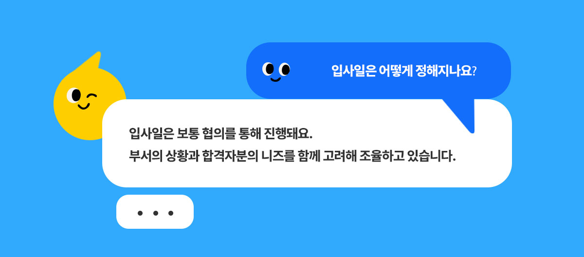 구체적인 입사일은 부서의 상황과 합격자분의 일정을 함께 고려해 조율하고 있습니다.