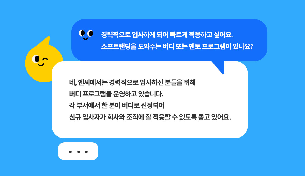 엔씨에서는 신규입사자분들이 새로운 환경에서 조금 더 편하게 적응하실 수 있도록