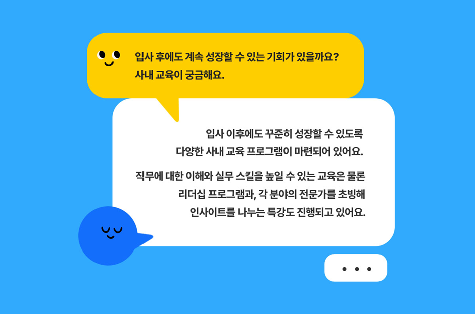 입사 이후에도 꾸준히 성장할 수 있도록 다양한 사내 교육 프로그램을 운영하고 있어요 ✍️ .