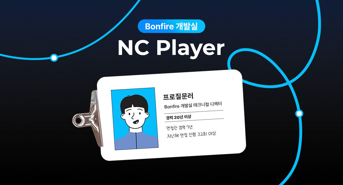 게임 개발 경력은 20년이 조금 넘었고, NC에 합류한지는 약 10년 정도 되었습니다. 현재는 팀원들과 함께 신규프로젝트 론칭이라는 새로운 목표를 향해 나아가고 있습니다. 면접관으로 참여한 지는 7년 정도 되었고, 작년 한 해에만 총 32회 이상 면접을 진행했어요.